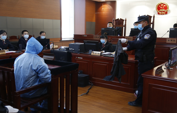 本次庭审,严格按照疫情防控工作要求,所有参加庭审人员均提供了7日内的核酸检测报告,并佩戴口罩。被告人按照要求穿着防护服、佩戴口罩,同时,旁听人员保持安全距离间隔就坐。