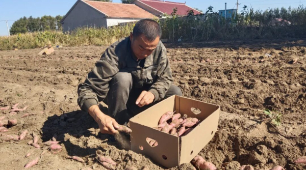 走进长岭镇宝山村的地瓜田,采收忙碌的景象映入眼帘。种植户齐学文正带领工人们分拣、装箱,饱满的地瓜在箱中整齐堆积,透着丰收的喜悦。齐学文家今年种植了20亩地瓜,从9月下旬开始分拣采收,月底全部完成,总产量预计突破10万斤。为了保证地瓜品质,他坚持人工采收、手工分拣的方式,确保每一个地瓜都完好无损。